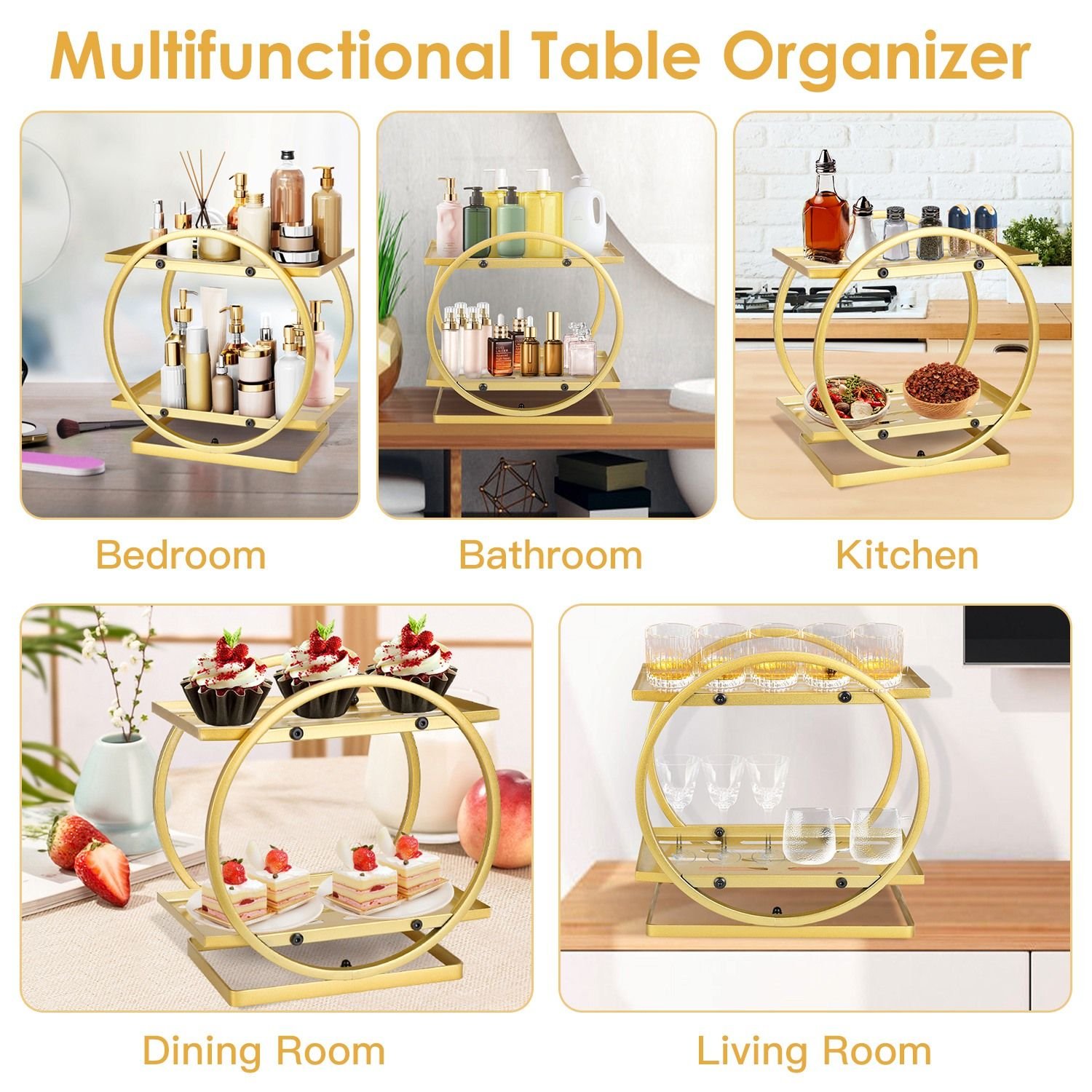 Home > 2 Tier Makeup Organizer for Vanity Gold Perfume Organizer for Dresser Carbon Steel Kitchen Bathroom Countertop Organizer