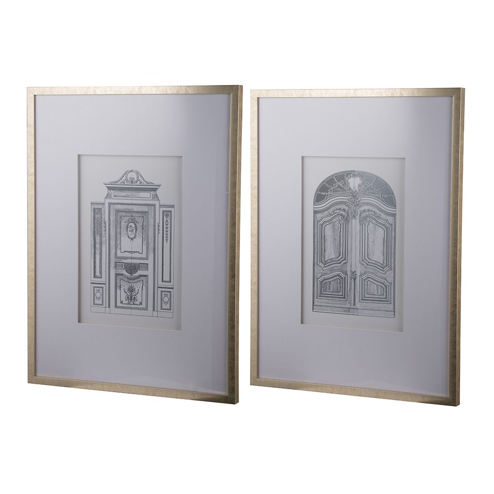 Display your love for classic architecture with this pair of pencil art prints. Each one features a different style of ornate door the intricate renderings present something new to notice with each glance. These would be perfect for a home library, office, or even an entryway.