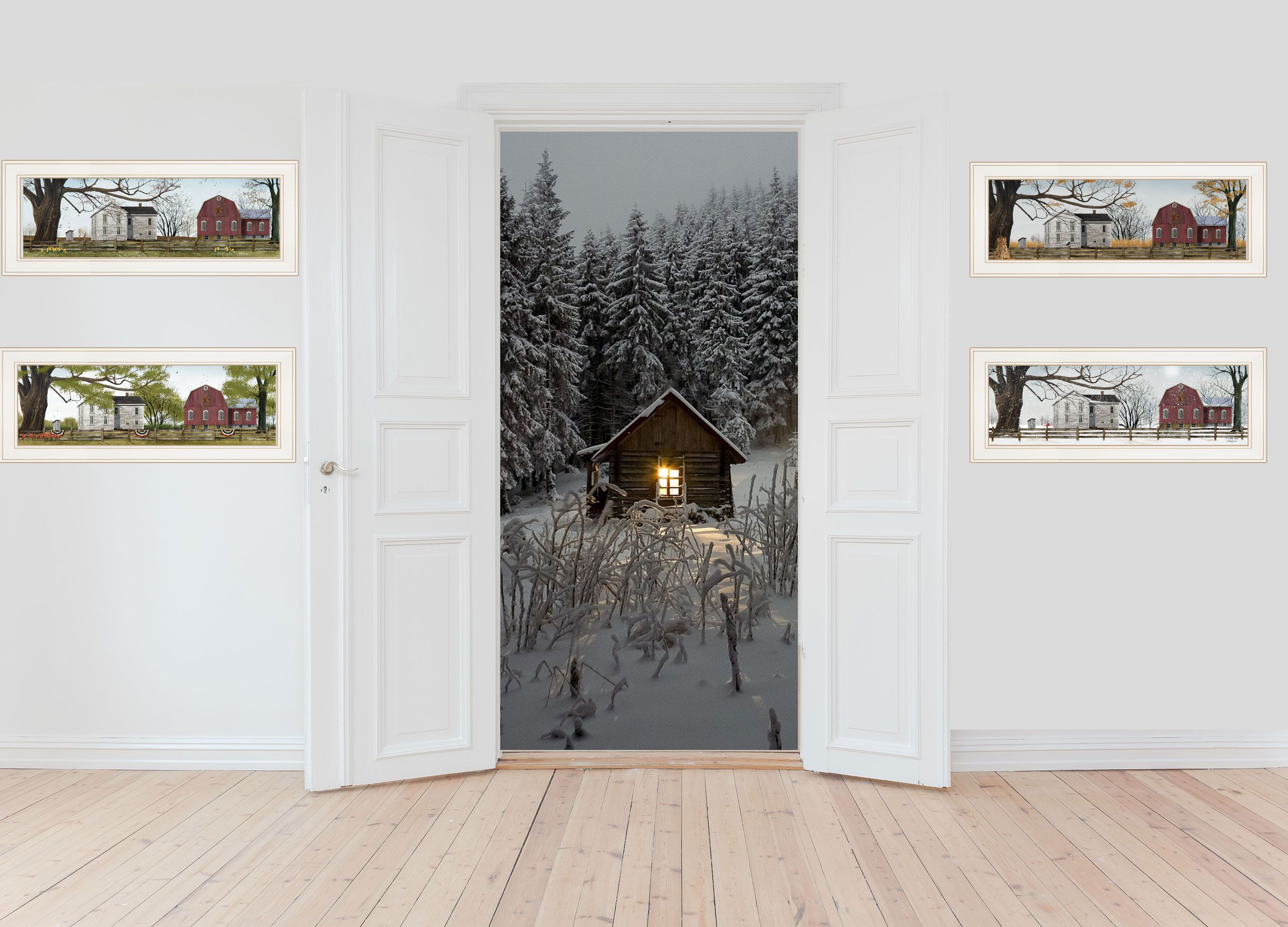 " Four Seasons Collection II" by artist Billy Jacobs. This 4 piece collection of 21"x9" white framed seasonal prints of a farm in the : spring, summer, Harvest Time, and a little snow. Framed print has a UV coating (glass is not needed) and arrives ready to hang.•TEXTURED ARTWORK with a 'rolled on' acid-free acrylic coating to create a canvas painting effect.•UV PROTECTANT COATING protects artwork from fading. No glass is necessary.• MOULDING adds natural beauty to the framed art. Frame is keyholed for the easy hanging.•THIS FINE HOME DECOR piece made in the USA by Woman Owned Business (WBE) is a perfect gift for a friend or relative.