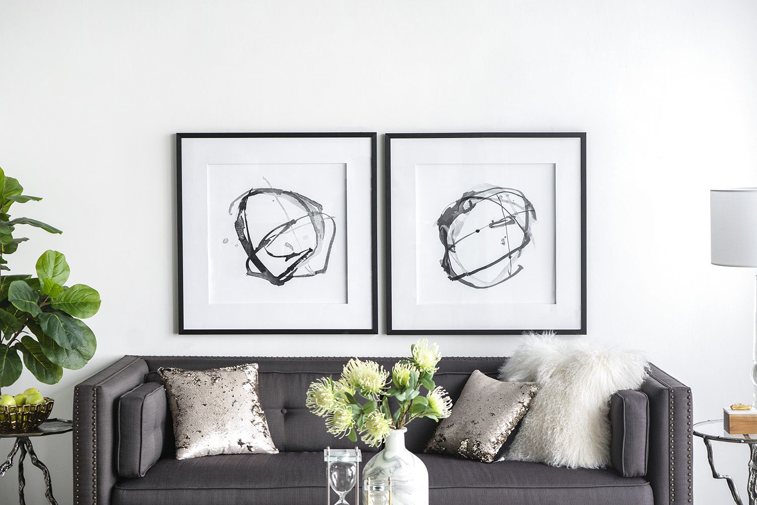 Modern and bold, this set of prints features the lush look of watercolors in chic, contrasting shades of black, gray, and white. Add these dynamic prints to a handsome office, contemporary living room, or crisp master bathroom for a sleek look. Perfect on a vibrant, colorful wall, these prints also create a dramatic, monochromatic effect against a white wall.
