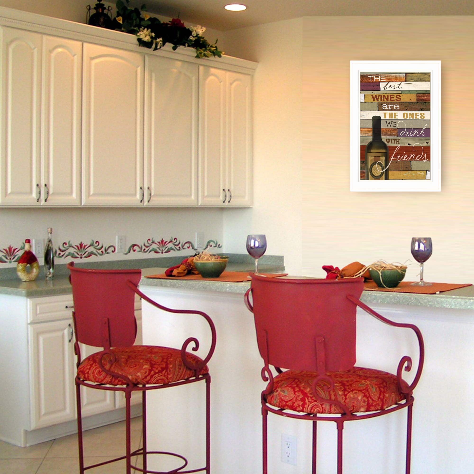 MA842-226G "The Best Wine" is a 15"x21" white framed art print by artist Marla Rae. This artwork features a wood plank look, with a bottle of wine and reads "The Best Wines are the Ones We Drink with Friends". This totally American Made wall decor item features an decorative white frame. The print has a protective, archival finish (glass is not needed) and arrives ready to hang. •Textured Artwork with a 'rolled on' acid free acrylic coating to create a canvas painting effect. No glass is necessary.•Surface of the print has a fade resistant coating.•Arrives Ready to Hang•Woman Owned Business (WBE)•Handmade in the USA•Decorative Moulding adds natural beauty to the framed art.