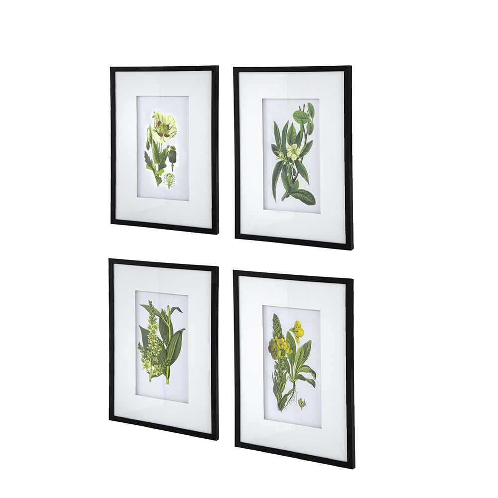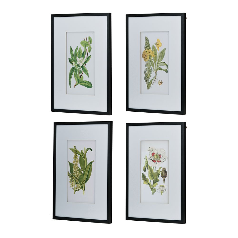 With elegant simplicity and lush colors,this set of four botanical prints makes the perfect way to bring a touch of nature indoors.Hang this set together in an airy sunroom,chic office,or luxurious master bathroom for clean,sophisticated look.In smaller spaces or to create a cohesive look between rooms,separate the set into different spaces and enjoy natural beauty throughout your home.