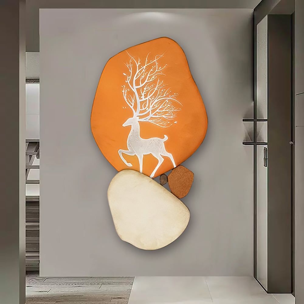 Modern Wooden Deer Wall Decor Irregular Abstract Elk Painting Art Living Room Bedroom
