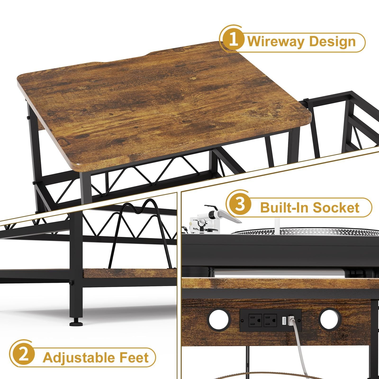 [Adaptable Height Adjustment]4 adjustable legs transform this record player stand into a universal solution: Compensate for uneven floors, create under-cabinet cleaning space, or optimize turntable height for ergonomic operation
