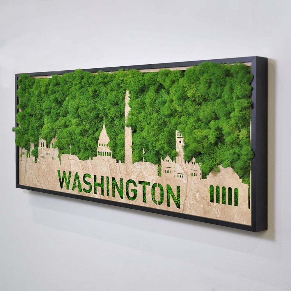 Washington City beauty: This eye-catching silhouette moss art iron hanging frame wall decoration allows you to experience the mesmerizing beauty of Washington City, showcasing its iconic buildings through graceful silhouettes.