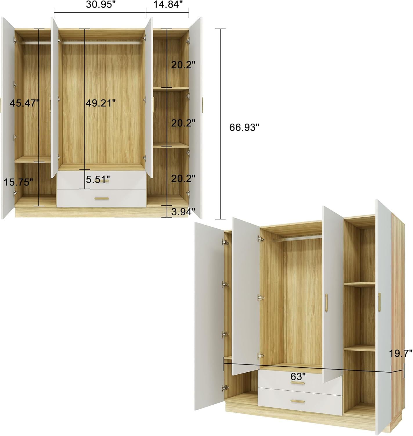3.Enduring Quality : Our wooden armoire wardrobe closet with drawers is built from wood, ensuring it remains intact over long periods. The fine craftsmanship ensures that every aspect, from the solid framework to the sophisticated closet drawers, endures through time. Ideal for both daily use and long-term storage, this bedroom armoire reliably keeps your clothes in perfect condition.