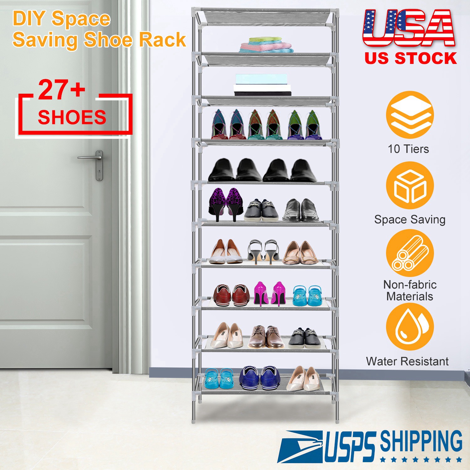 Home > 10 Tiers Shoes Rack Shelves 27 Pairs Shoes Storage Organizer Stand Non-Woven Fabric Detachable Shoes Tower Stackable Shoes Storage Rack for Entryway