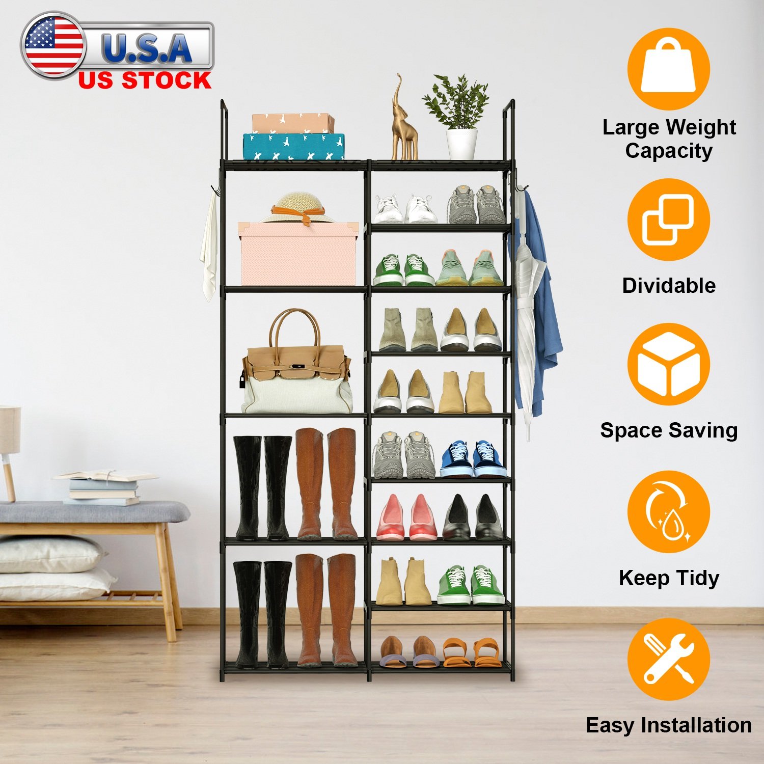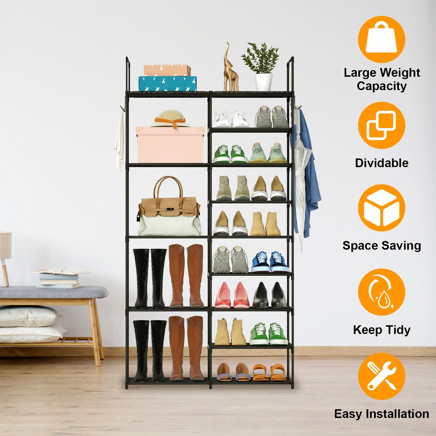 9 Tiers Plus 5 Tiers Shoe Rack Metal Shoe Storage Shelf Free Standing Large Shoe Stand 28+ Pairs Shoe Tower Unit Tall Shoe Organizer with Side Hooks f 9 Tiers Plus 5 Tiers Shoe Rack Metal Shoe Storage Shelf Free Standing Large Shoe Stand 28+ Pairs Shoe Tower Unit Tall Shoe Organizer with Side Hooks f 9 Tiers Plus 5 Tiers Shoe Rack Metal Shoe Storage Shelf Free Standing Large Shoe Stand 28+ Pairs Shoe Tower Unit Tall Shoe Organizer with Side Hooks f 9 Tiers Plus 5 Tiers Shoe Rack Metal Shoe Storage Shelf Free Standing Large Shoe Stand 28+ Pairs Shoe Tower Unit Tall Shoe Organizer with Side Hooks f 9 Tiers Plus 5 Tiers Shoe Rack Metal Shoe Storage Shelf Free Standing Large Shoe Stand 28+ Pairs Shoe Tower Unit Tall Shoe Organizer with Side Hooks f